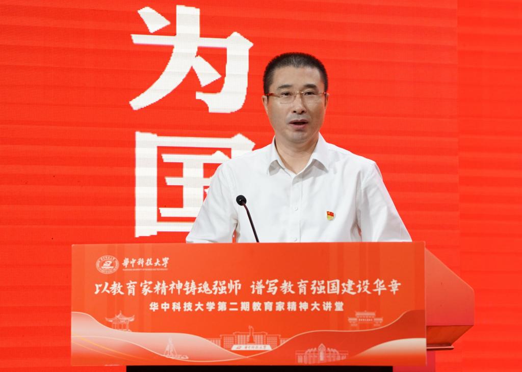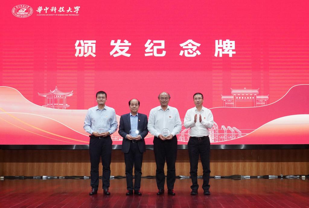 宣讲结束后,张广军为三位教授颁发纪念牌并讲话。他指出,崔崑院士的事迹生动诠释了教育家精神的深刻内涵,展现了一名共产党员的使命担当,闪耀着“国之所需、我之所向”的赤诚光芒,凝聚了“为党育人、为国育才”的深厚情怀,彰显了“鞠躬尽瘁、无私奉献”的崇高境界,是华科大人共同的精神财富。他向广大师生提出三点要求:一是要深刻感悟,坚守初心,筑牢精神支柱。二是要深化认识,见贤思齐,涵养高尚师德。三是要深入践行,赓续传承,矢志争创一流。希望华科大教师以崔崑院士的事迹为榜样,更好肩负起“为党育人、为国育才”的光荣使命。