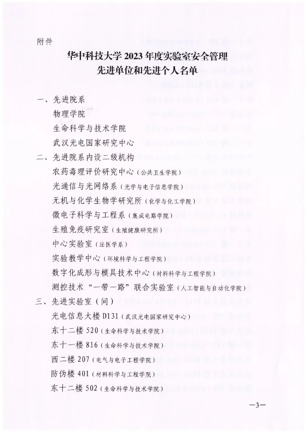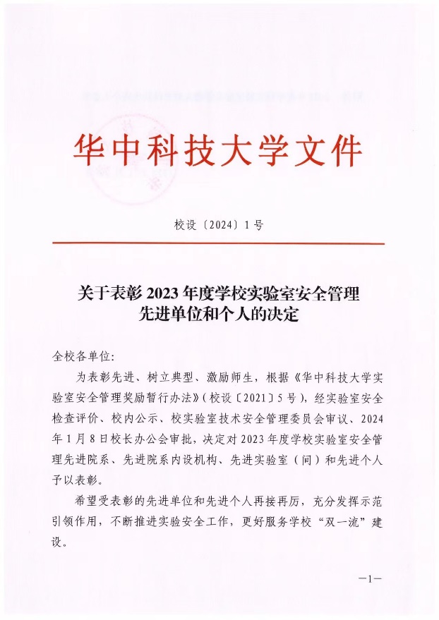 《关于表彰2023年度学校实验室安全管理先进单位和个人的决定(校设〔2024〕1号)》的通知