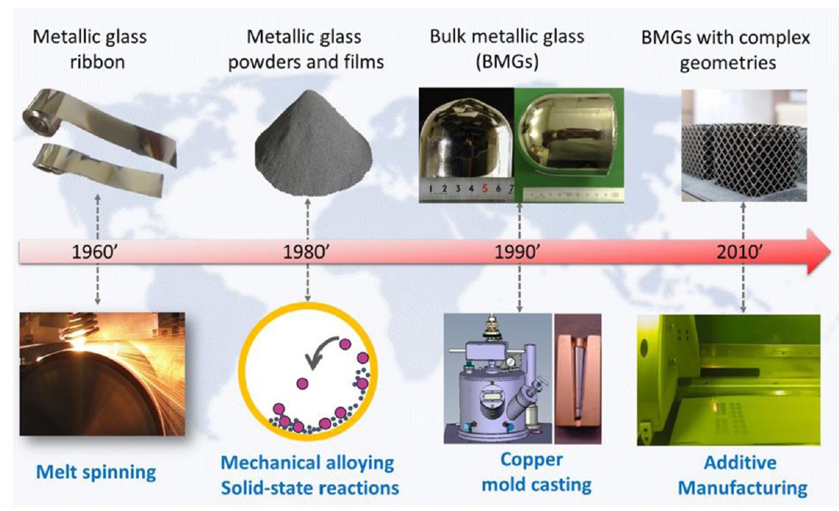 作为一种非常规的先进金属材料,非晶合金(BMG)多年来因其独特的无序结构和优异的性能吸引着全世界的关注。然而,有限的玻璃形成能力和加工难度一直限制了非晶合金的广泛工业应用。近年来高速发展起来的3D 打印技术似乎是克服非晶合金上述缺点的一个有效途径。因此,非晶合金的增材制造在全球范围内受到越来越多的关注。在这篇综述中,作者们全面总结了与 BMG 3D 打印相关的各个方面,包括 :非晶合金的不同3D 打印制备技术、3D打印非晶合金的微观结构、3D 打印非晶合金的力学性能、3D打印非晶合金复合材料及力学性能以及3D打印非晶合金的功能特性。增材制造非晶合金不再受尺寸和几何形状的限制,这为其作为结构和功能材料应用打开了一扇新的大门。