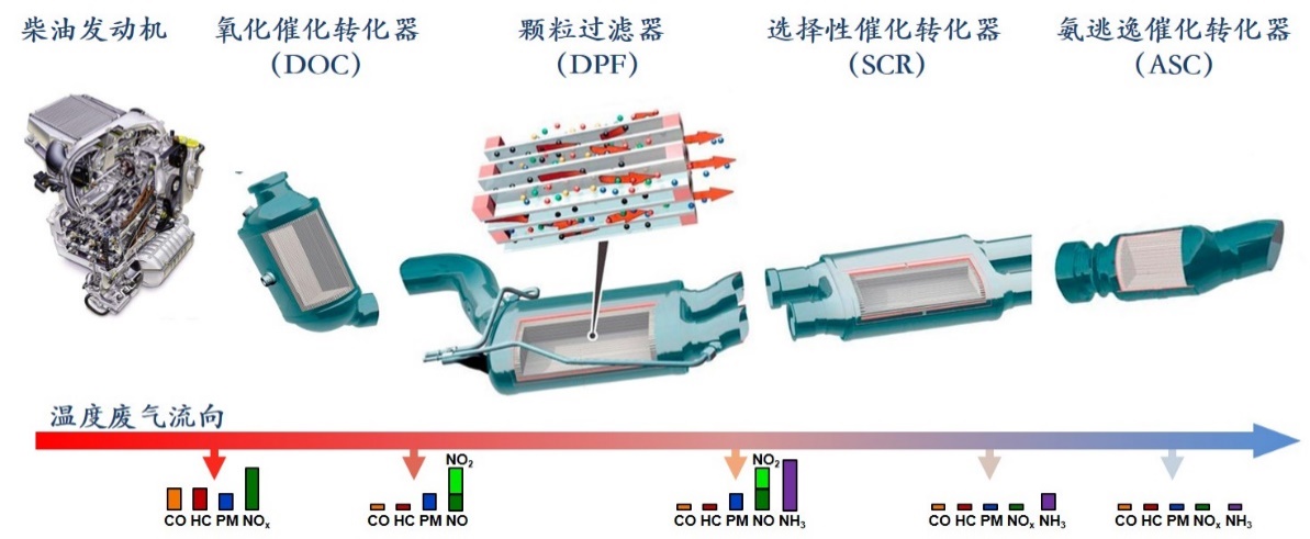 机动车尾气污染是我国大中城市空气污染的重要来源,选择性还原(SCR)脱硝可有效地消除柴油车尾气中的NOx, 但过量的尿素喷淋导致了尾气中氨气的逃逸。考虑到泄漏氨气的危害,需在柴油车SCR末端安装氨逃逸催化器(ASC)。国五标准之前的法规对逃逸氨没有限值,ASC属于国六标准下催生的新型处理装置。