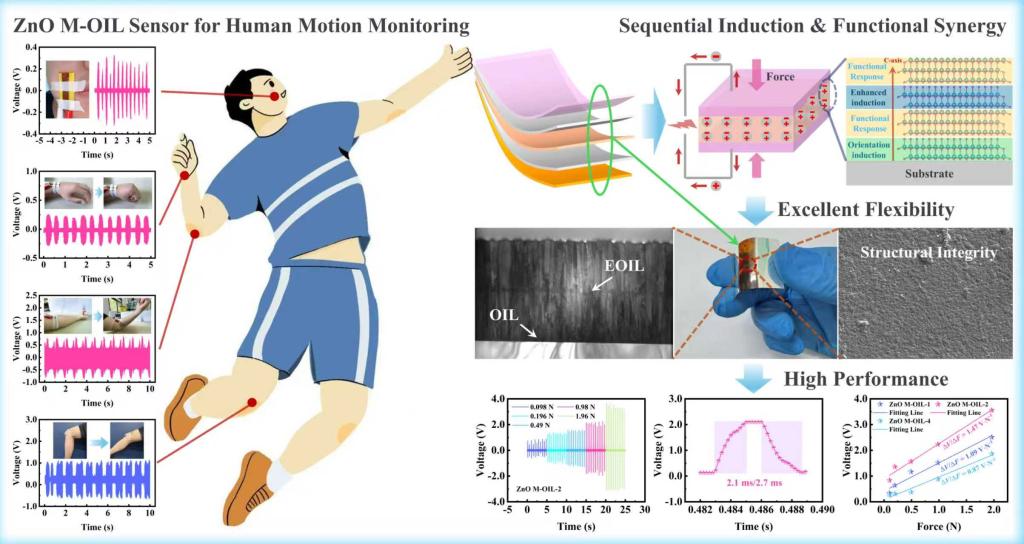 柔性ZnO M-OIL薄膜压电传感器的沉积策略及其高性能人体运动监测应用