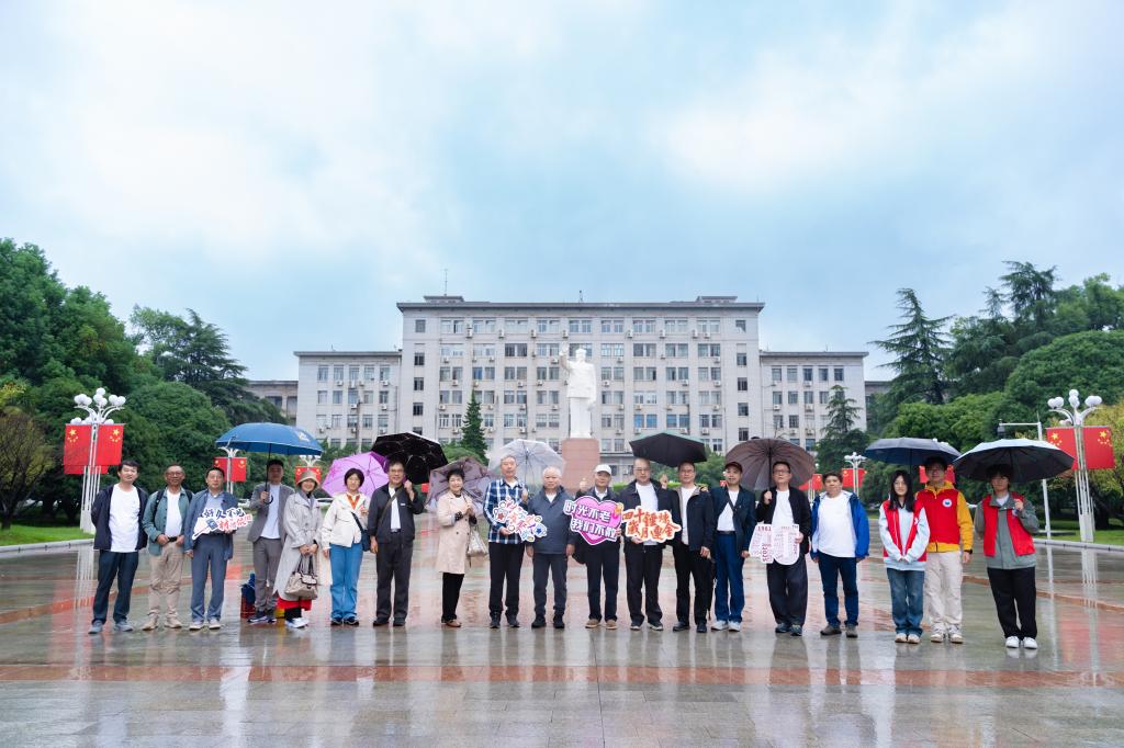 校友们首先在先进制造大楼西楼广场合影留念,随后,大会在金材812班校友朱培军主持下举行。