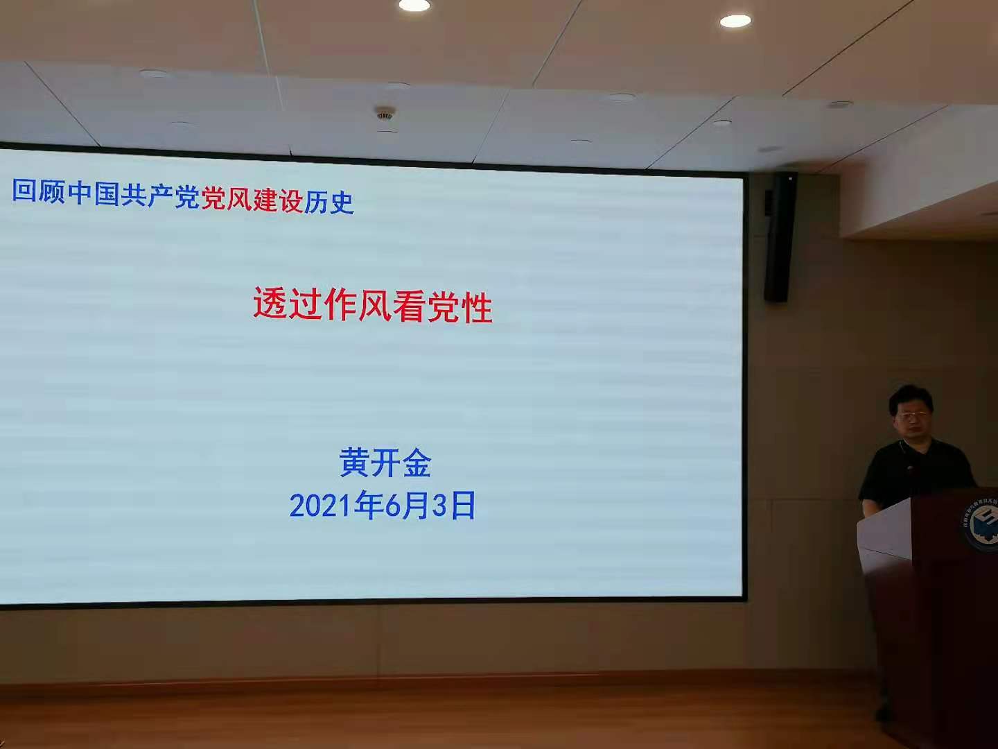 图1.  黄开金老师做《透过作风看党性》专题教育