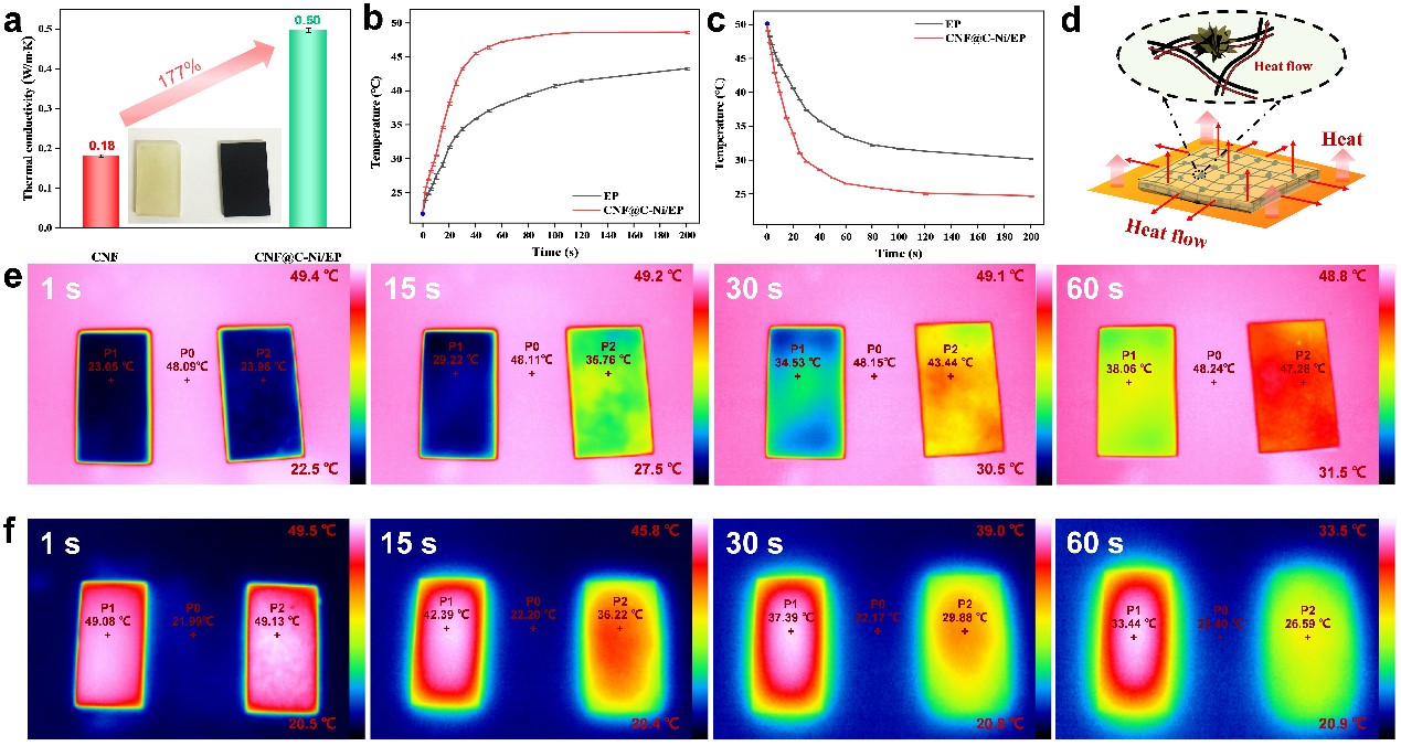 图二CNF@C-Ni/EP热导率以及热管理性能