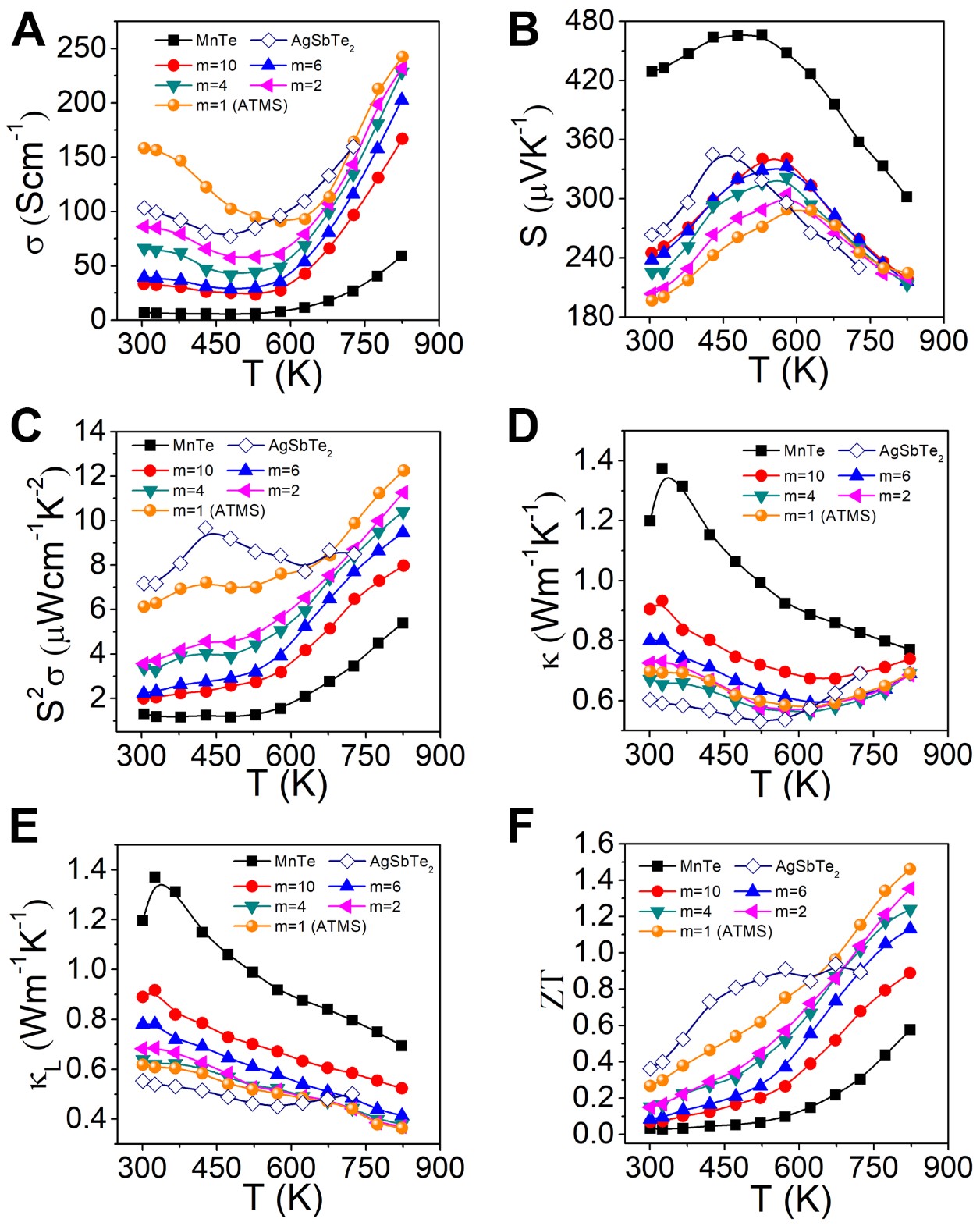 图2. 材料的热电性能